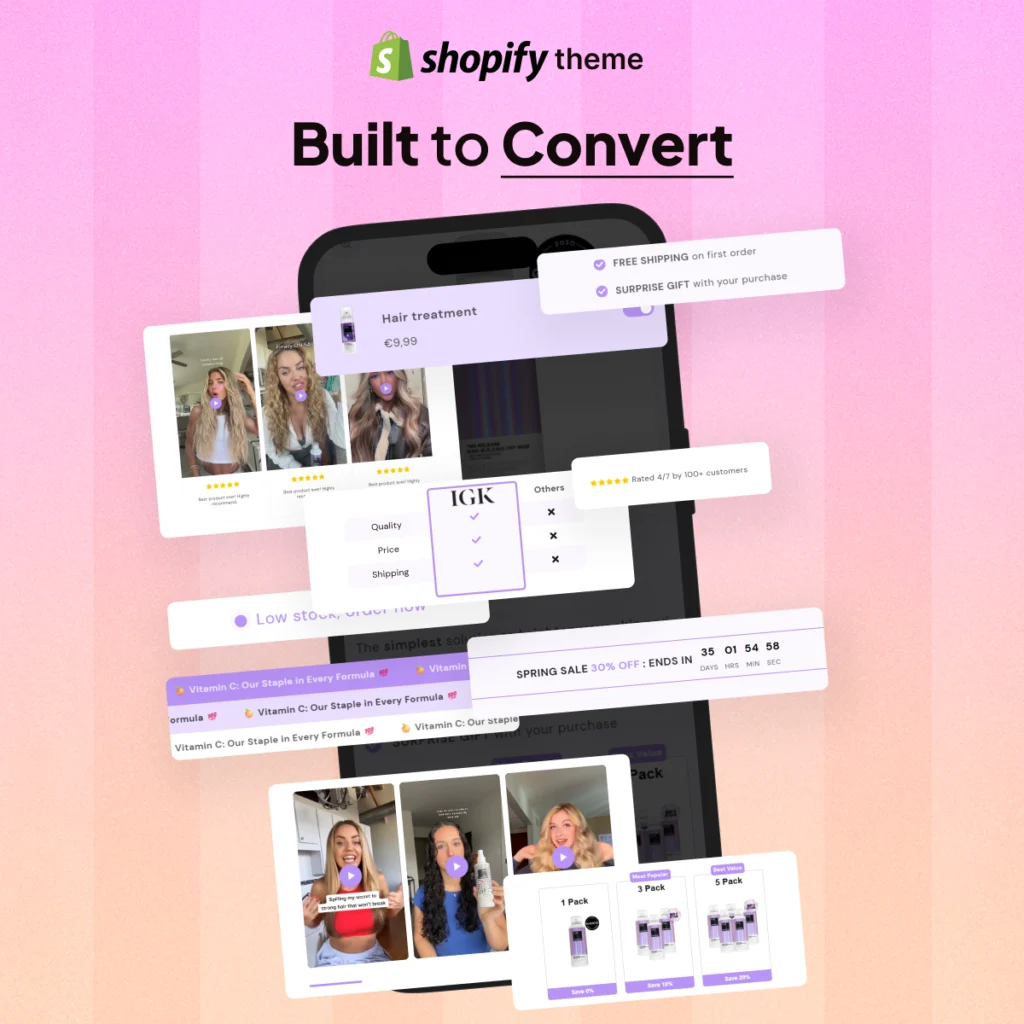 We release fresh features every Sunday to continuously improve your conversion rates. All updates are free and automatic once you own the theme. Recent additions include countdown banners, before/after sliders, and enhanced cart messaging.